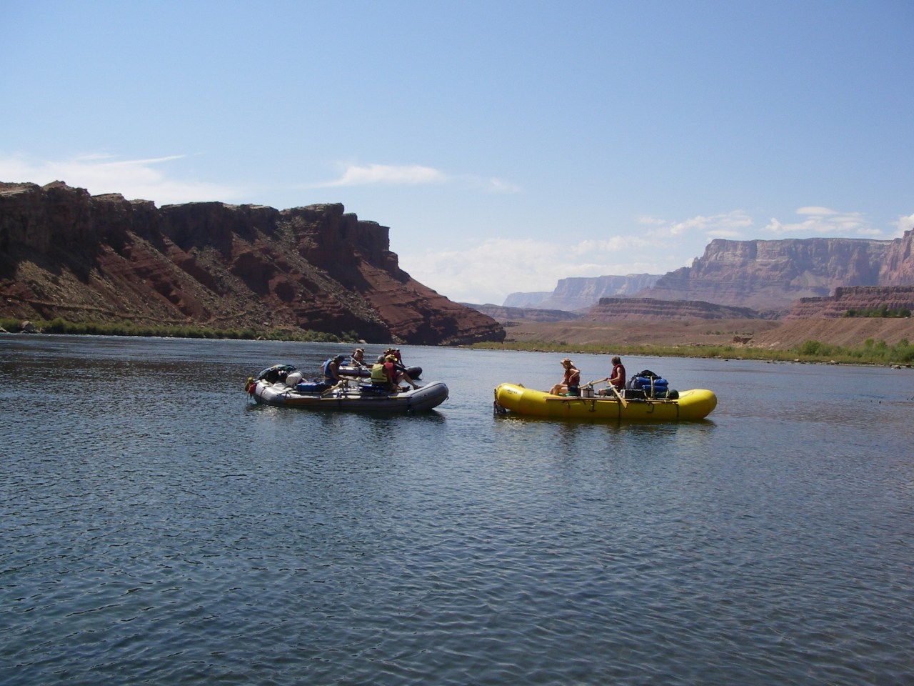 John needed absolute silence on his boat. Coyote has a calm that manages to make one forget that they were in a smaller boat with a leak on the bottom. Jess threw on his lucky bandana and smiled reassuringly. Christine turned, non-chalantly, towards the dukcy and got ready to take Hance head-on. Needless to say though, I think everyone was a little nervous despite appearances.